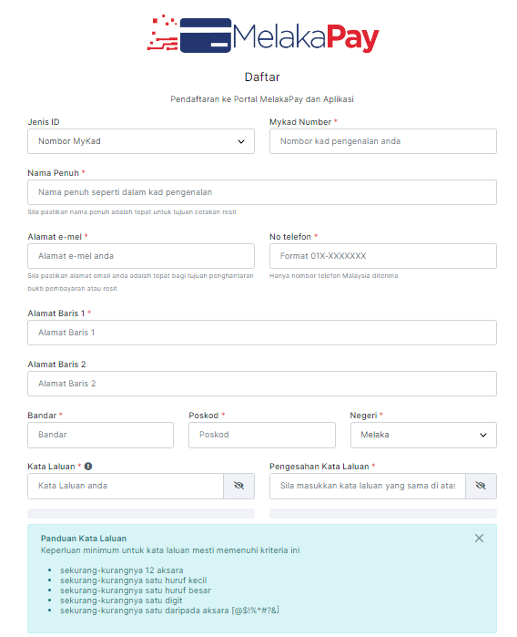 Langkah 1: Layari portal MelakaPay di https://melakapay.melaka.gov.my